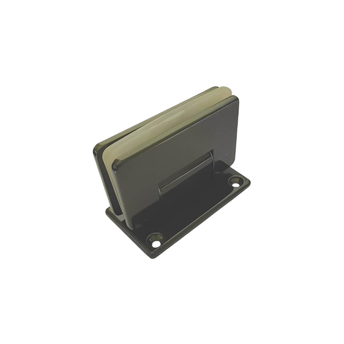 Dobradiça central para união vidro/alvenaria para portas e box de banheiro de vidro temperado “blindex”. Ferragem ideal recomendada para vidro temperado com espessura de 6 a 10 milímetros.